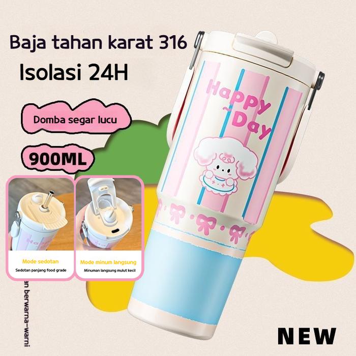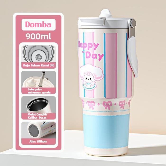 c06 Tumbler Stainless 316 900ml/ Tumbler Botol Minum Anti Tumpah Tahan Pan Tumbler Aesthetic Korea - Domba Doodle-900ML