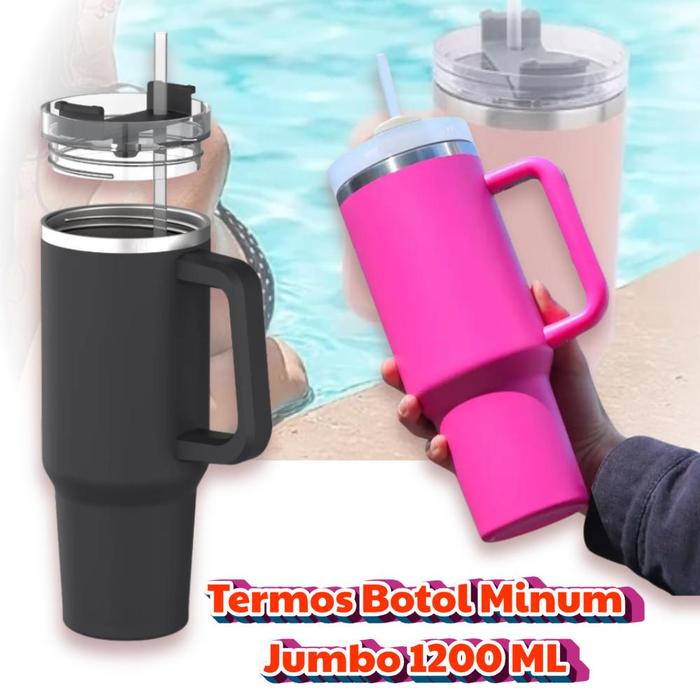 Thermos Tumblr Termos Gelas Botol Minum Jumbo Besar Viral 1200ML Tahan Panas Dingin Es Batu Stainless Steel - Biru