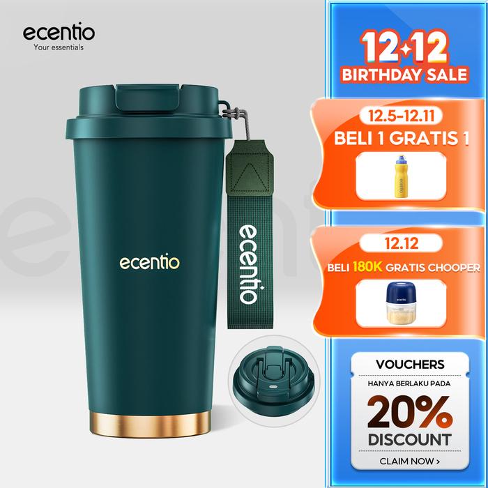 ecentio tumbler minum premium tahan dingin 24 jam botol stainless 316 portable tumblr 530ml - Hijau