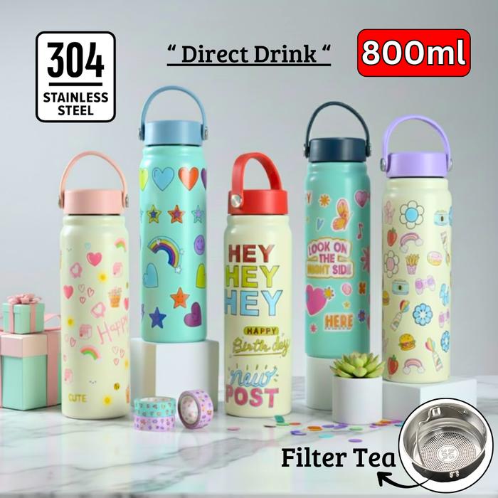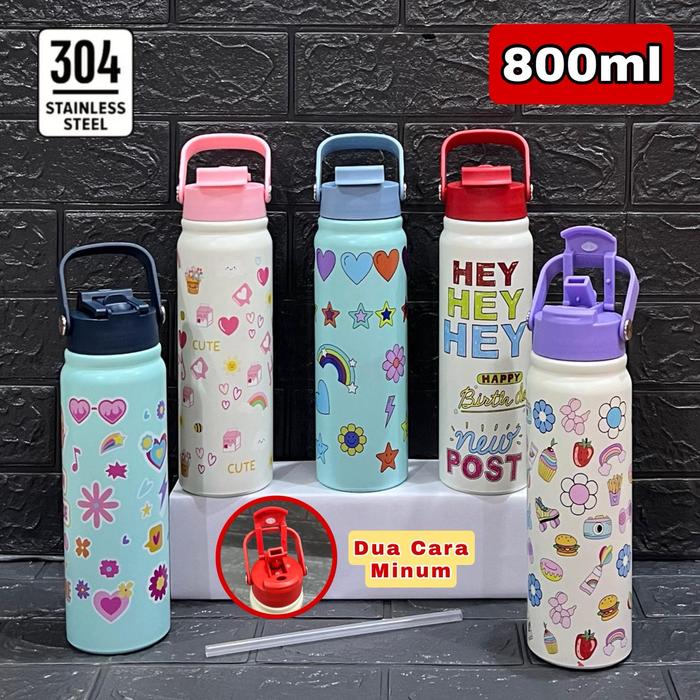 Tumbler Bottle 2in1 Stainless Steel 800ml / Flip Straw Water Bottle / Botol Minum Moon - MOON RED