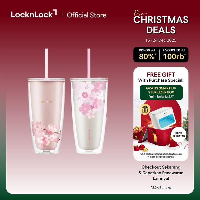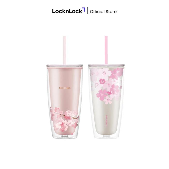 LocknLock Botol Minum Double Wall Cold Cup Cherry Blossom - HAP509 - White