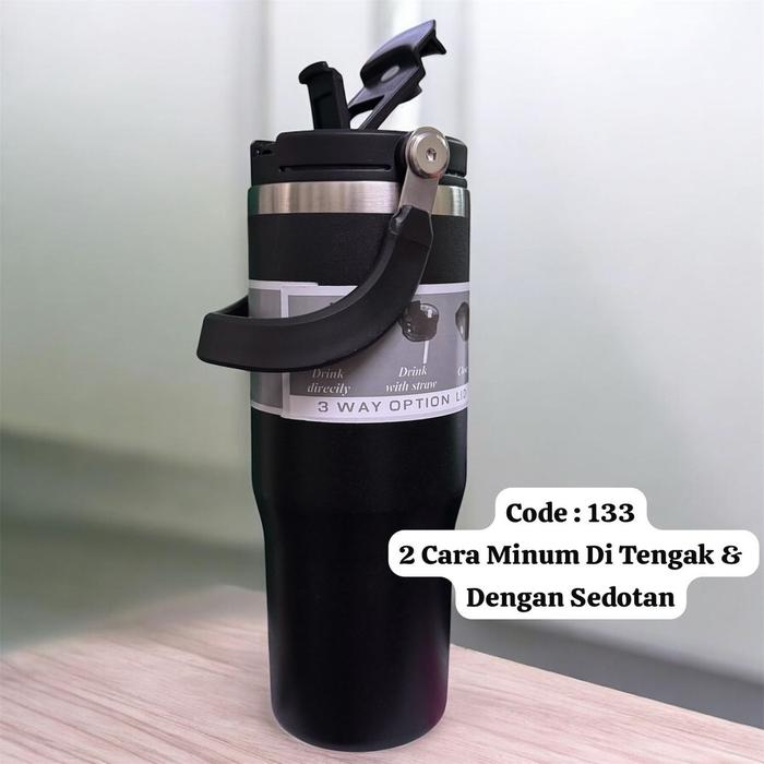 Tumbler 133 Stainless Dengan 2 Cara Minum DI Tengak Dan Dengan Sedotan 900Ml 2in1 - Tumbler 133 Hitam