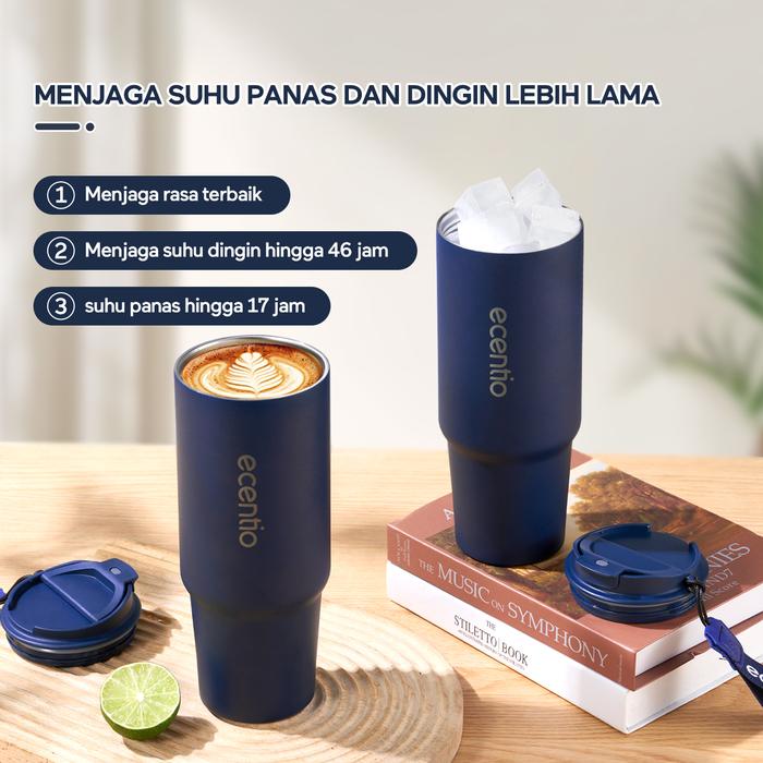 Ecentio Tumbler Stainless Vacuum 900ml Tali Rajut Portable Thermos Botol Minum Besar Mulut Gelas untuk Minum Langsung