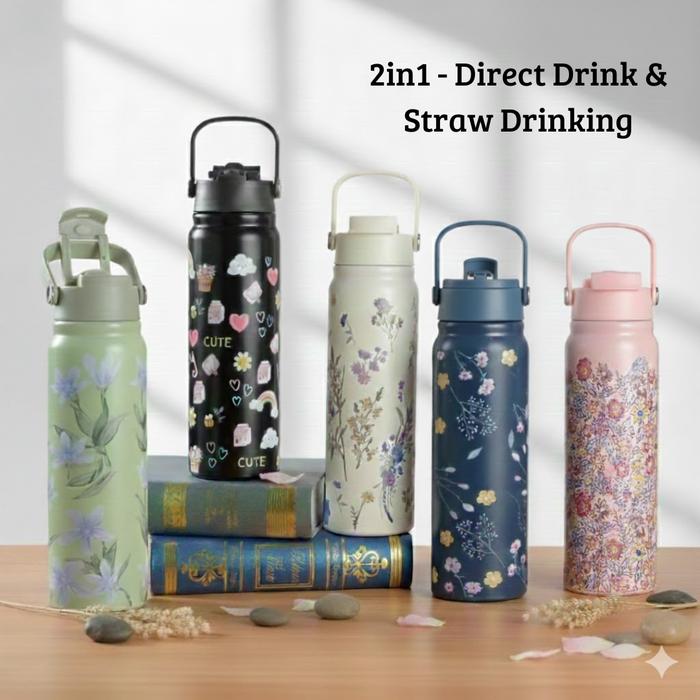 Tumbler Bottle 2in1 Stainless Steel 800ml / Flip Straw Water Bottle / Botol Minum Viola - VIOLA SIP PINK