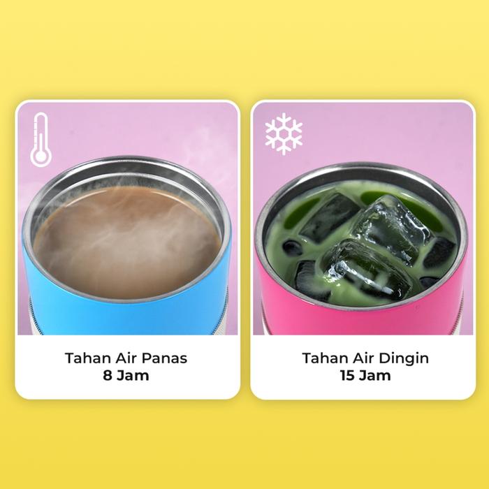 Technoplast Tumbler Stainless Steel Coffee Tumbler with Bottle Strap Tahan Panas Dingin 15jam 400ml - Biru