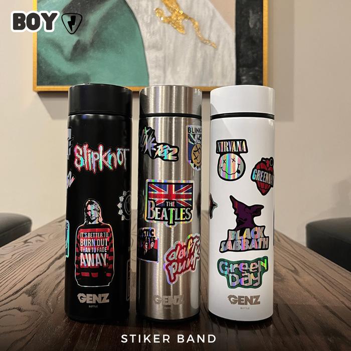 Tumbler aesthetic Stainless Tahan panas dan dingin suhu temperatur Stiker band holo premium - HITAM COWO