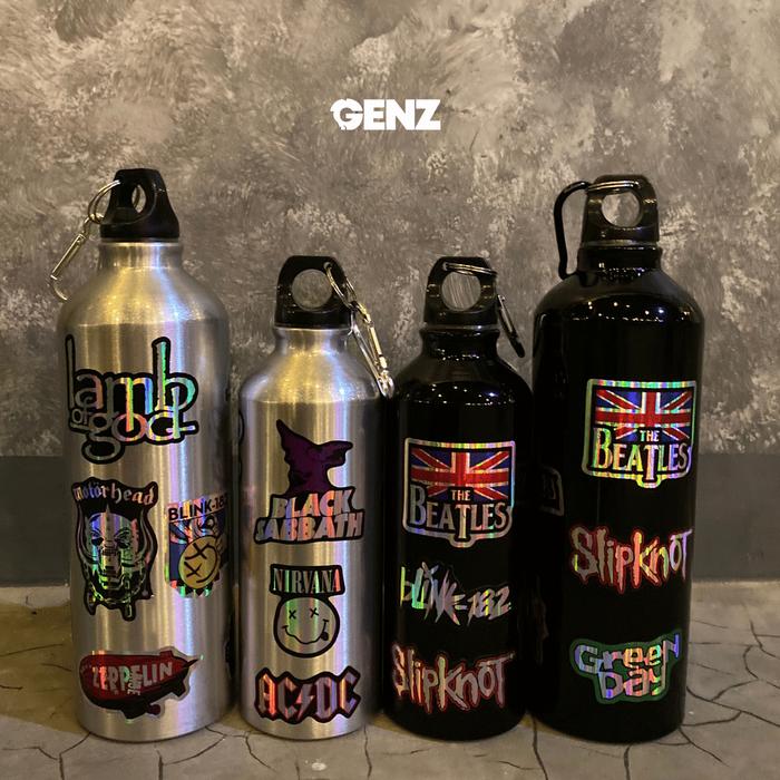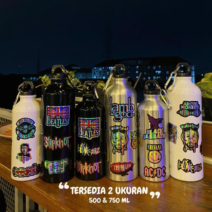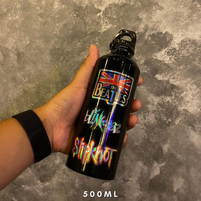 Botol CARABINER Stainless Ringan Sports Water Bottle Tumbler Minum Olahraga 500ml & 750ml Stiker Band - HITAM 500 ML