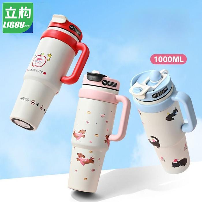 Tumbler Stainless Steel Vacuum 1000ml-Botol Minum Portabel Tahan Panas/Dingin Termos Luar R-an - Blue