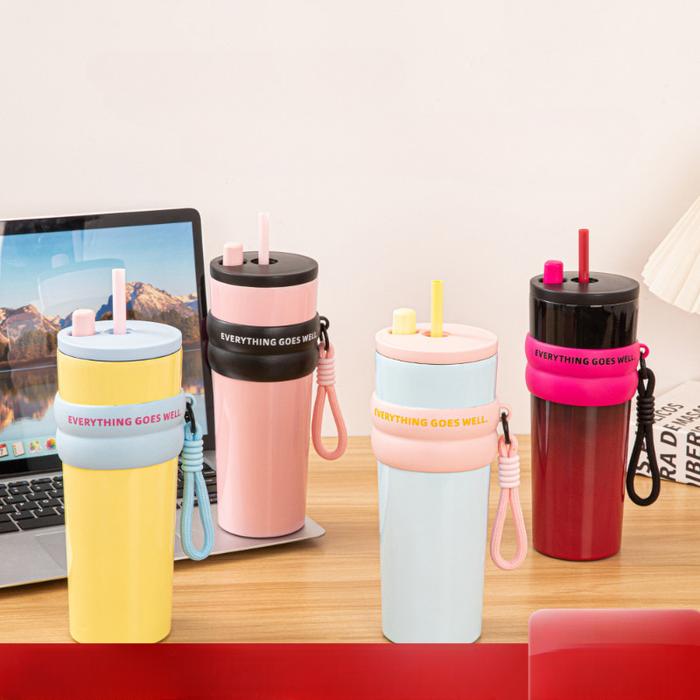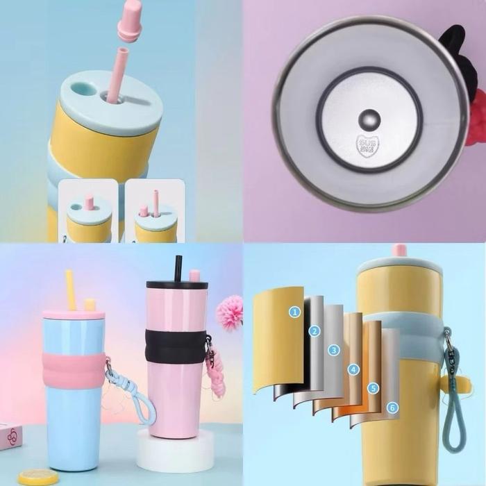 Tumbler Viral Tumbler Vacuum Free Sedotan Gantungan Lucu / Tumbler 710ml Stainless Steel SUS 316 - PINK