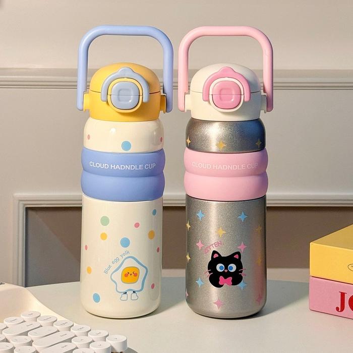 Termos Vakum Tumbler Cute Pets 600ml Stainless Botol Minum Lucu - Abu