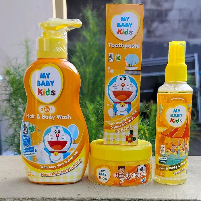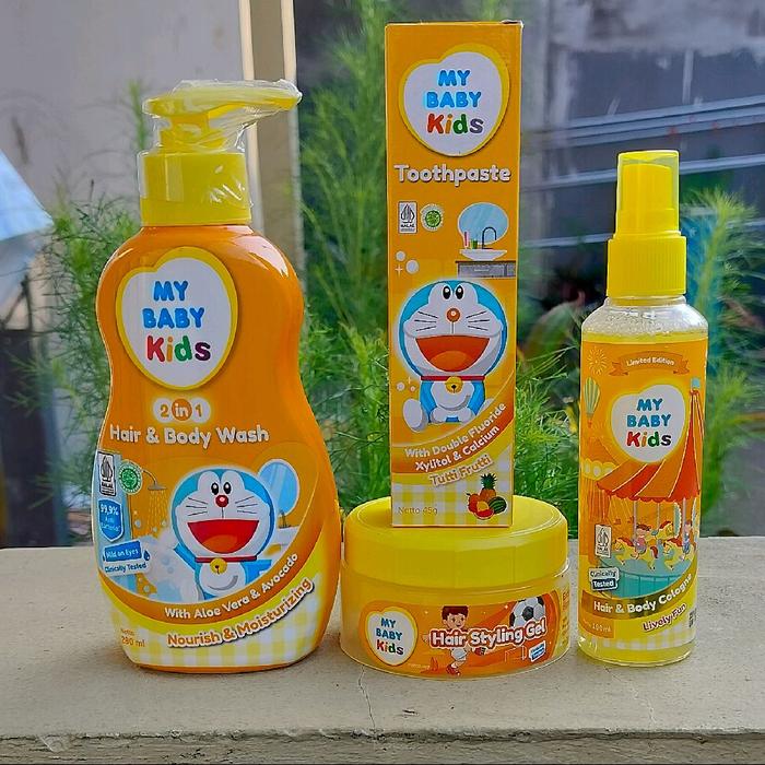MY BABY KIDS PAKET BUNDLING Hair & Body wash+Stayling Gel+Toot Paste+Hair& body Cologne - Lovely Fun
