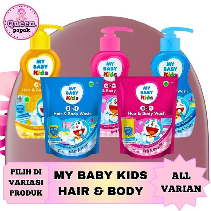 My Baby Kids Hair & Body - Sabun & Sampo 2in1 PUMP 280ML/REF 200ML ALL VARIANTQUEENPOPOK - HEALTHY (BIRU) 280ML
