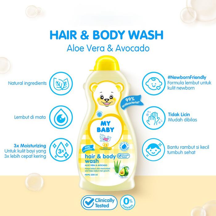 My Baby Hair & Body Wash 150ml+50ml - Sabun Mandi Cair Bayi - Aloevera Avocado