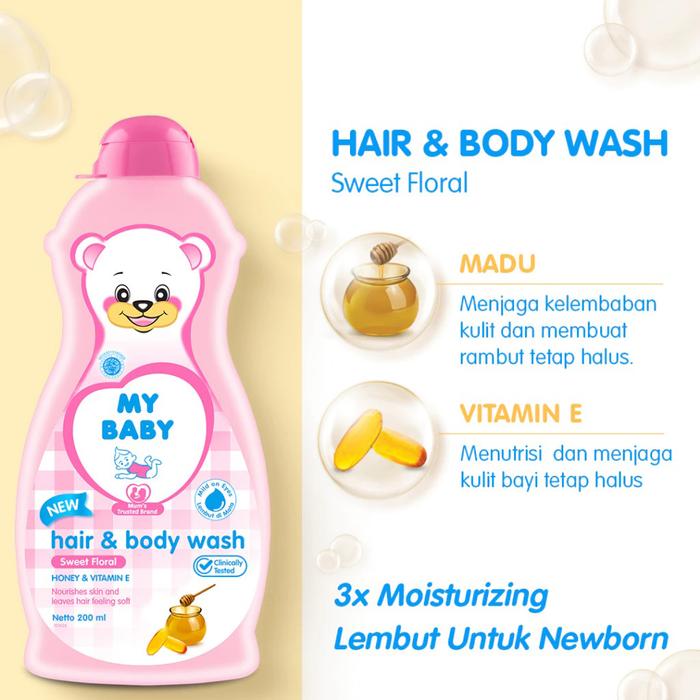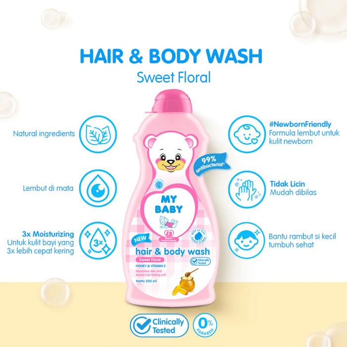My Baby Hair & Body Wash 150ml+50ml - Sampo & Sabun Bayi Cair - Pink
