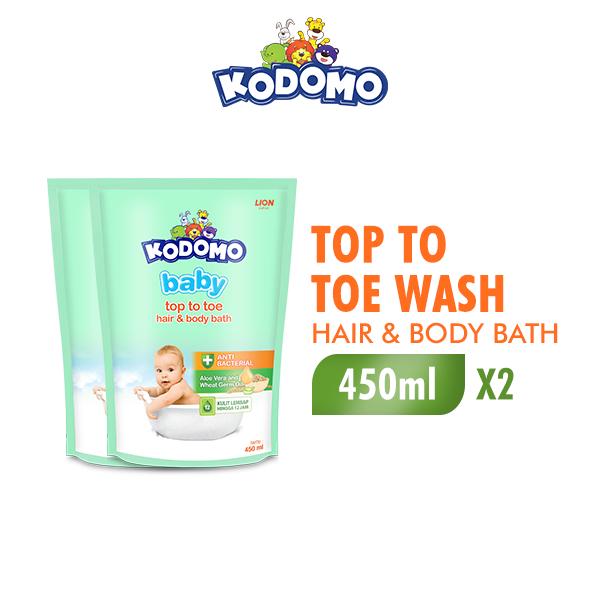 Kodomo Hair & Body Bath Top To Toe Aloe Vera Refill 450ml x2 Sabun Kulit Bayi
