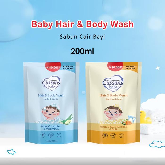 *GROSIR* Cussons Baby Hair & Body Wash 200ml Mild & Gentle Deep Moisture / Sabun Bayi Anak - Mild Gentle