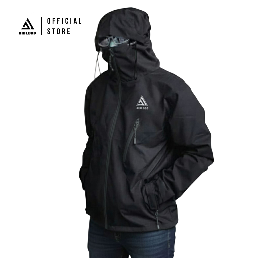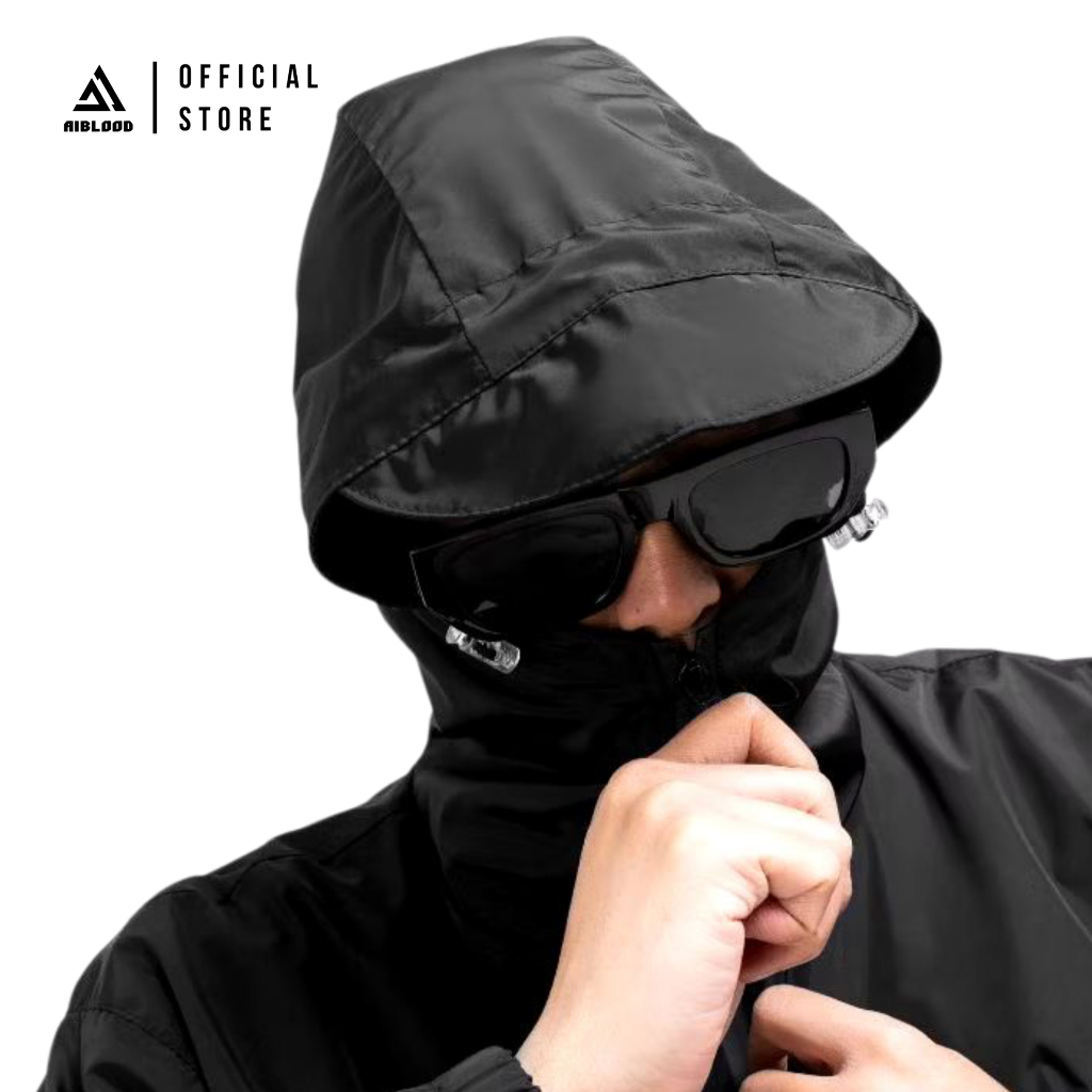 AIBLOOD Jaket Gorpcore Full Face Windbreaker Waterproof Pria Taslan Parasut Anti Air Outdoor Touring