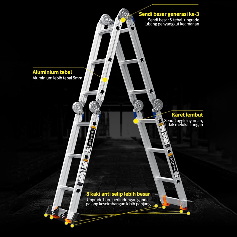 3.7m 4.7m 5.8m Lipat Aluminium Tangga Rumah Tangga Multifungsi Paduan Aluminium Dekorasi Konstruksi Tangga