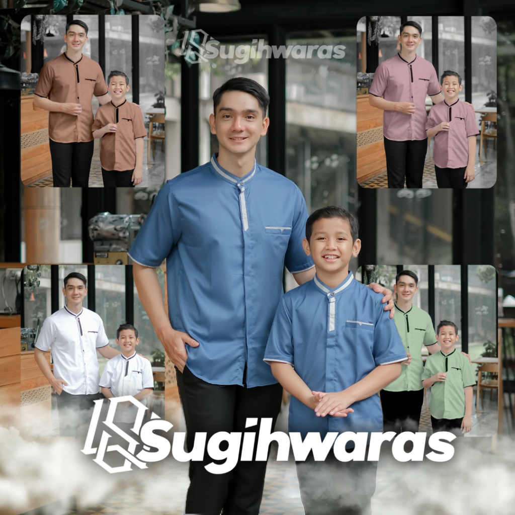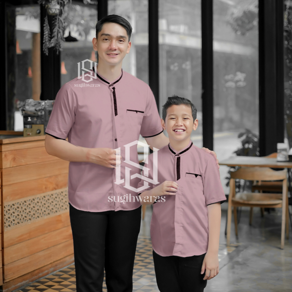 Baju Koko Couple Ayah Dan anak Laki Laki Lengan Pendek Terbaru Kain Toyobo Warna Denim