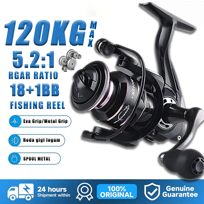 Reel Pancing NX1000-7000 Spinning Max Drag120KG 5.2:1 Asli Besi Fishing Reel Murah Kuat Power Handle