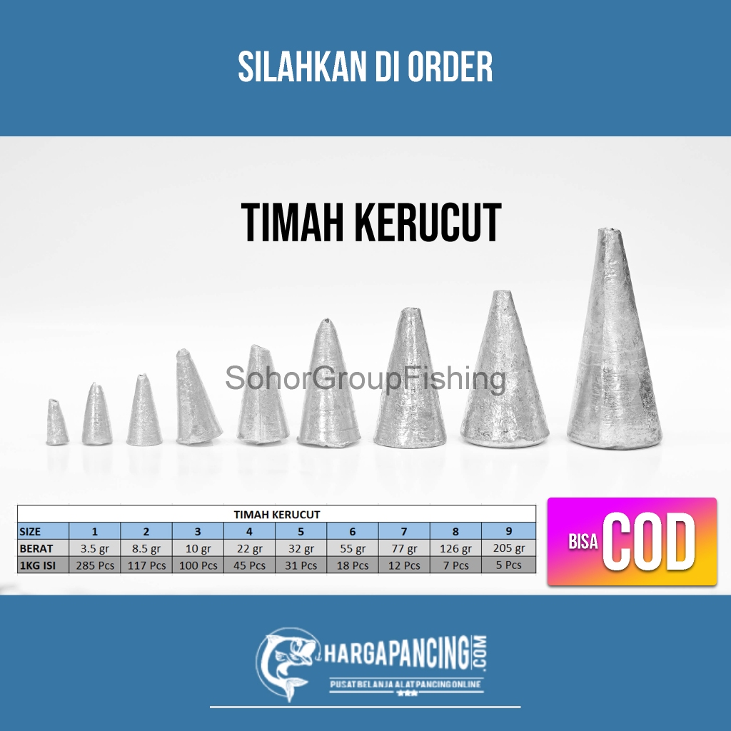 Timah Pancing Dasaran Bentuk Kerucut Isi 1KG