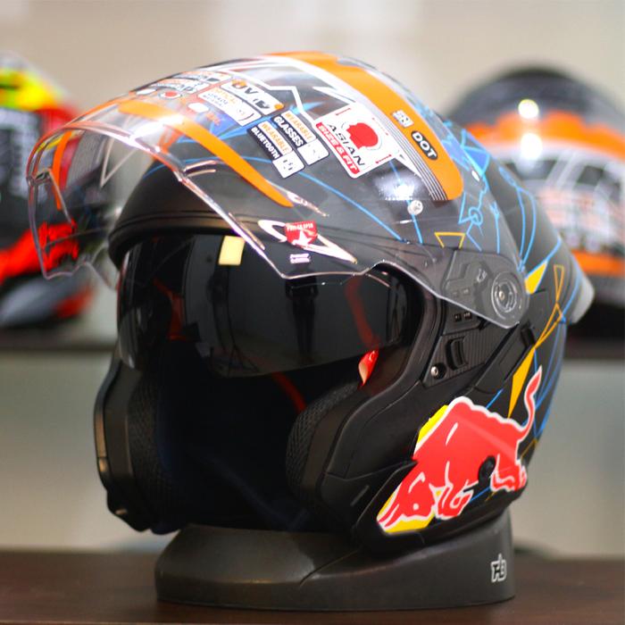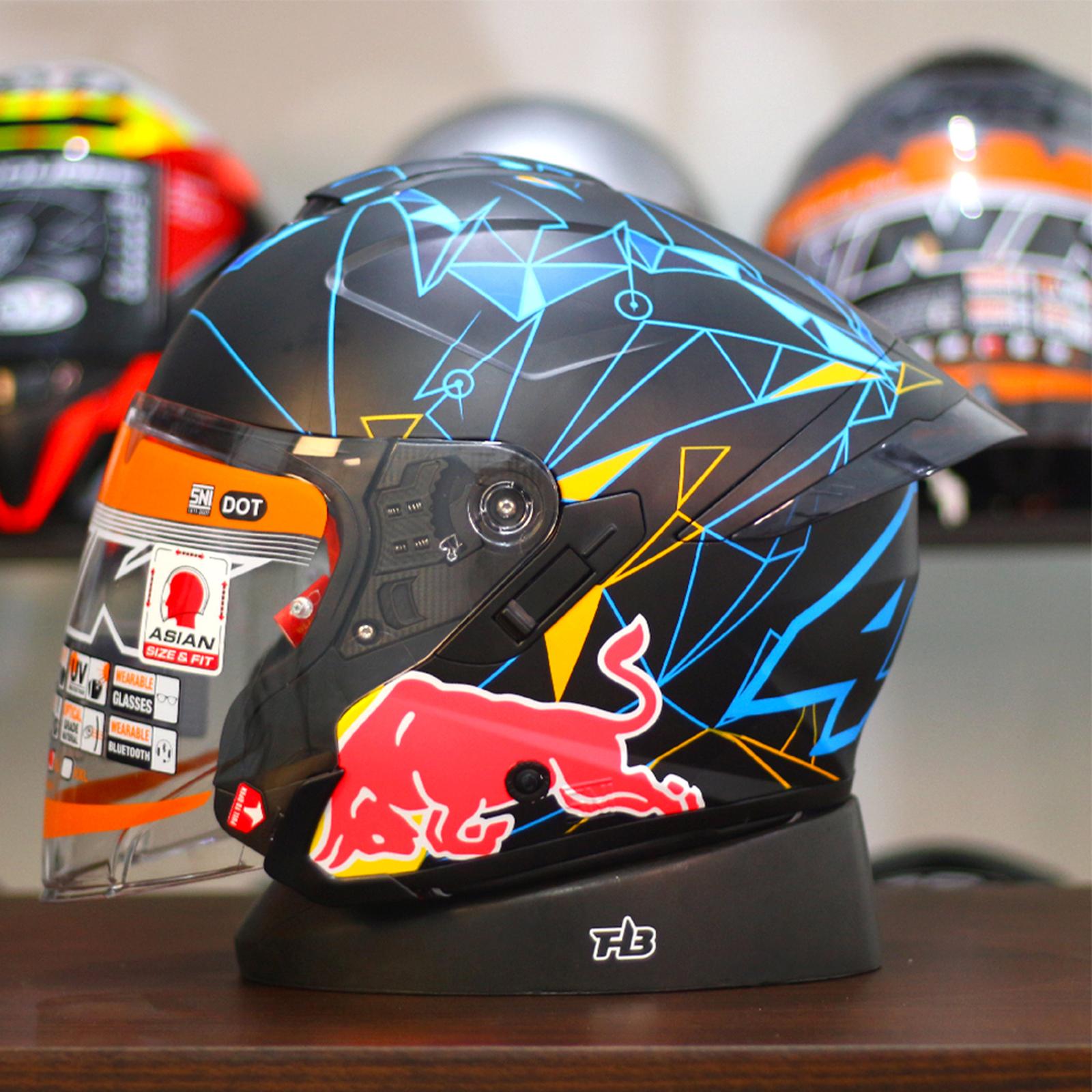 HELM INK TERRA 2 MOTIF CUSTOM | POL BLACK DOF | DOUBLE VISOR - M