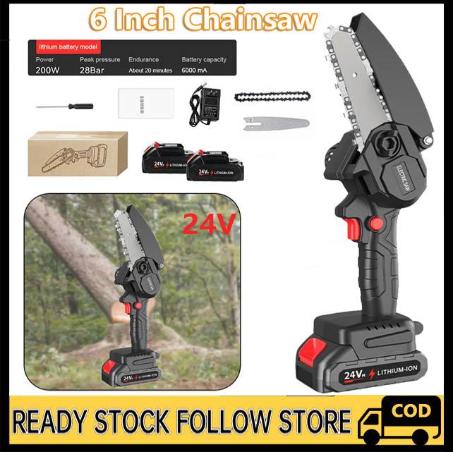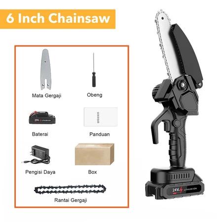 Gergaji Mini Chainsaw mini 6 Inch Cordless 2 baterai Tahan Lama Mesin Pemotong Kayu Portable - 6 inci/24V 1Baterai