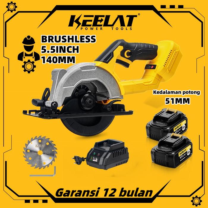 PROMO KEELAT-KCS003 5.5" Mesin Gergaji Potong Kayu Cordless Circular Saw - KCS003+4.0Ah*2