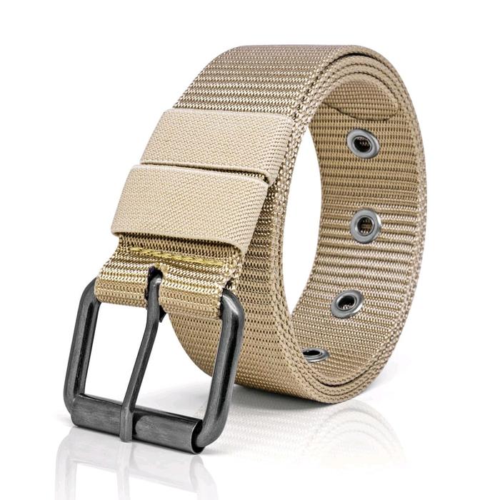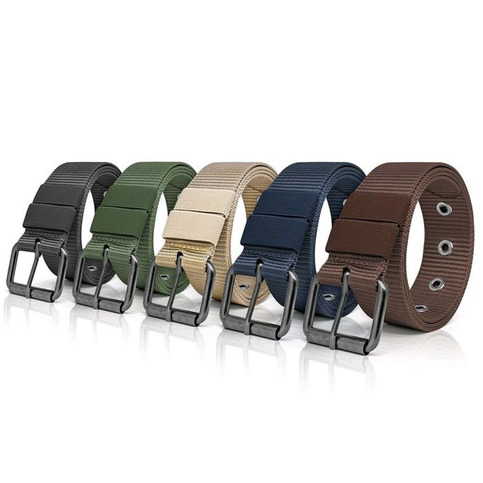Gesper Ikat Pinggang Sabuk Pria dan Wanita Tipe Lubang /Jarum Bahan Nylon Tebal Besi Hitam Belt - Hitam
