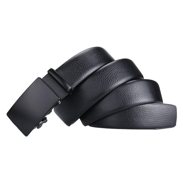 Ikat Pinggang Pria Wanita Rel Otomatis Kulit Sintetis Antigores Sabuk Kepala Besi Hitam Polos Elegan