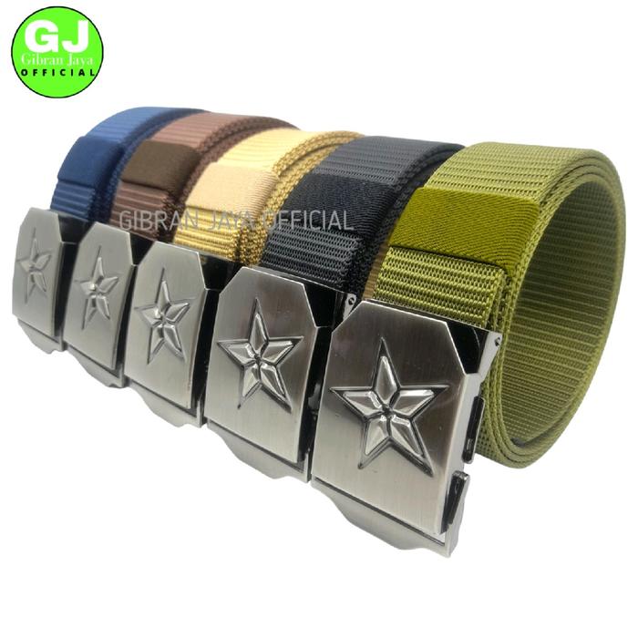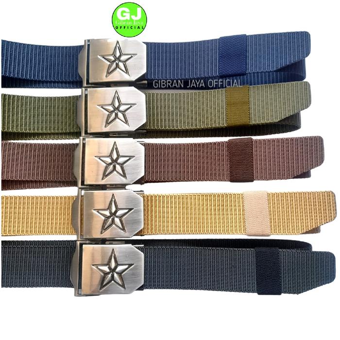IKAT PINGGANG NILON'GESPER NILON PRIA MODEL KEPALA JEPIT LOGO BINTANG - HITAM STANDAR 115CM