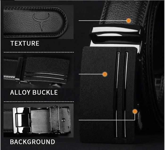 Ikat pinggang Pria Cowather Kulit Sapi Asli - CZ146 Black Stainless - Hitam 130