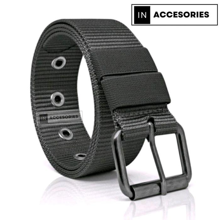 Gesper pria custom nylon army tipe jarum Aksesoris Sabuk Biru Dewasa Hijau Hitam Titanium Belt Seragam Strap - Hitam