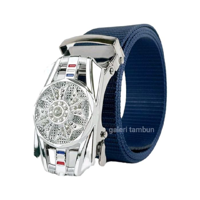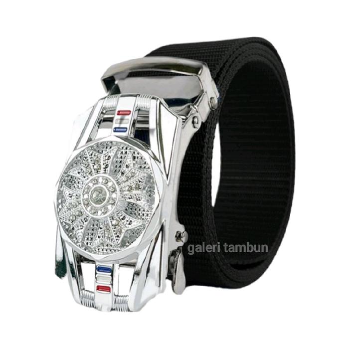 IKAT PINGGANG PRIA GESPER REL KINCIR SABUK KANVAS NILON BUCKLE METAL - hitam 110 cm