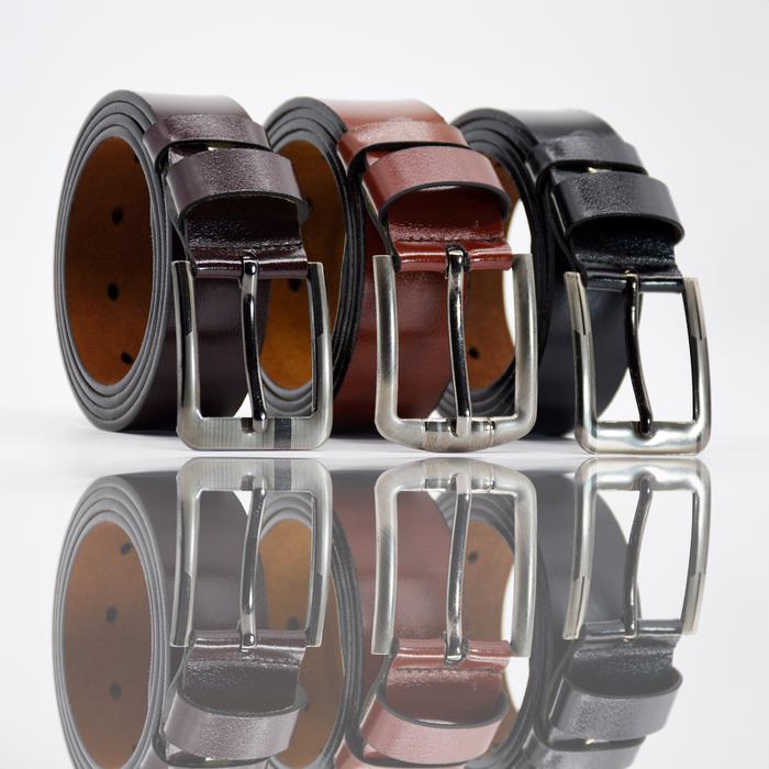YH004-Ikat Pinggang Pria Sabuk Pria Model Tusuk Jarum Bahan Kulit Imitasi Kepala Gesper Besi - HITAM