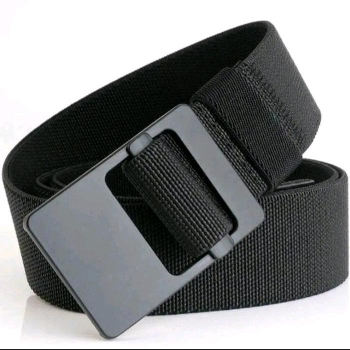 Gesper Ikat Pinggang Pria dan Wanita Sabuk Katun Polos Model Kepala Geser Hitam polos Tebal - HITAM