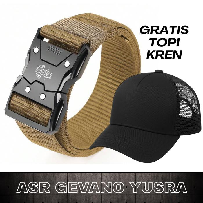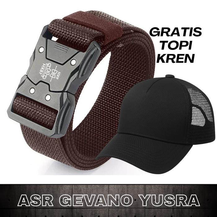 18. Sabuk Pria Gratis Topi - Ikat Pinggang Nylon Kanvas t4ct1c4l Kepala Fiber Panjang 115cm - Coklat