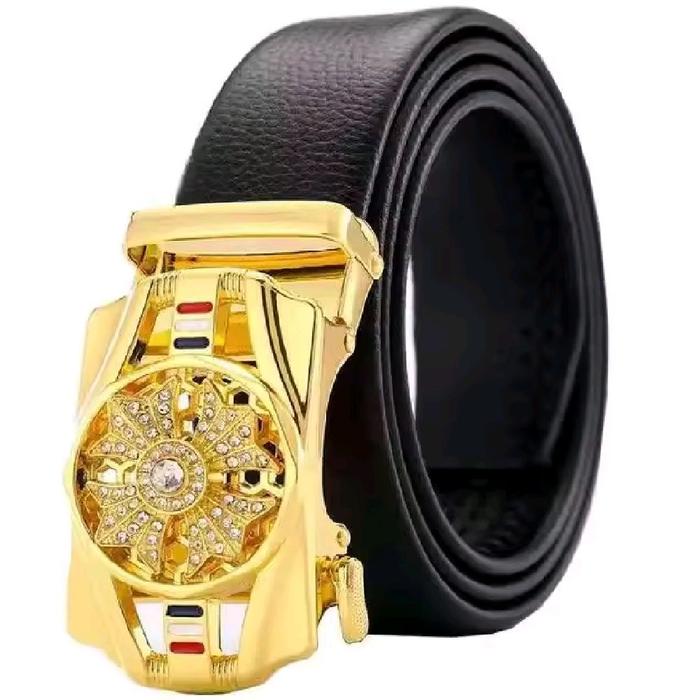 Ikat Pinggang pria wanita sabuk kulit Rel otomatis Premium Berkualitas Sabuk Gesper rel impor - KINCIR HITAM
