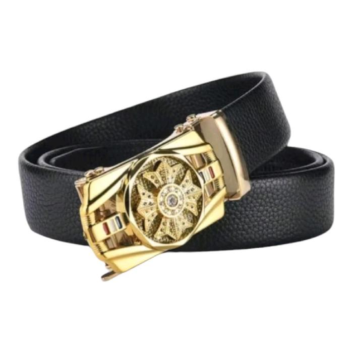 Gesper Sabuk Pria Kulit PU/Sintetis rell otomatis antigores kepala besi model kincir - Hitam 120cm