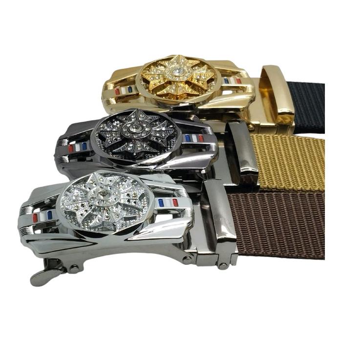 Belt Sabuk Pria Wanita Nylon canvas rell kepala model kincir - Hitam
