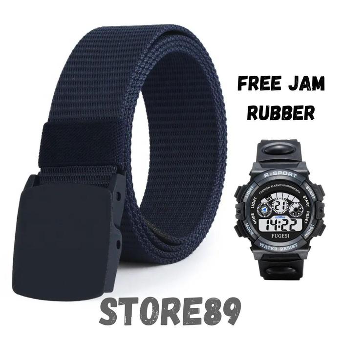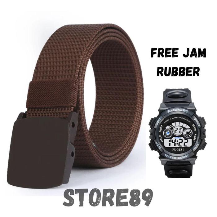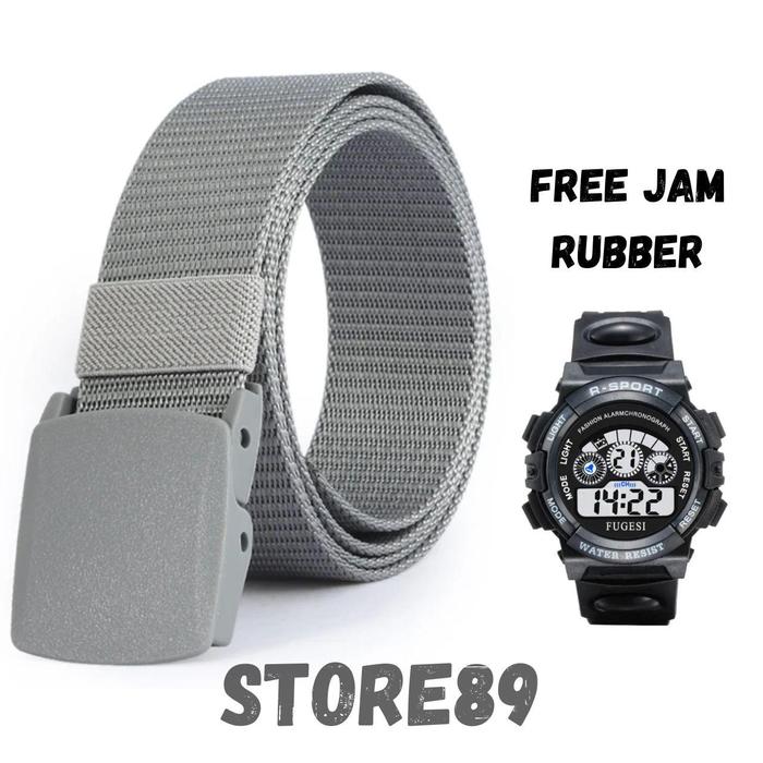 GESPER Terlaris ikat pingga hitam bonus jam ikat pinggang pria canvas anti xray bisa c06 sabuk kain - Abu-abu
