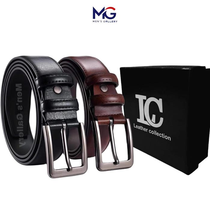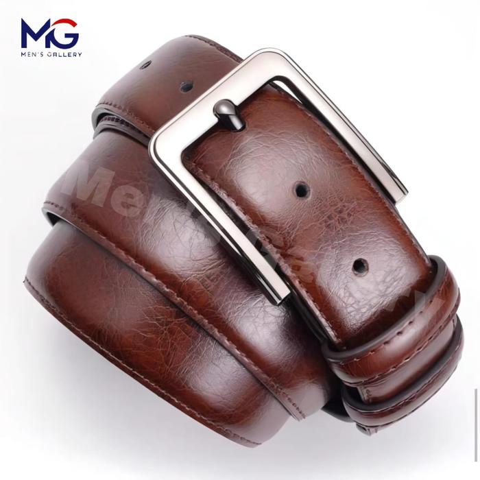Sabuk Pria Kulit PU Ikat Pinggang Formal dan Non Formal Hitam untuk Pria Wanita - Belt - Coklat Dengan Box