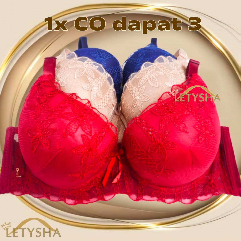 LETYSHA 3 PCS PROMO BH Bra Kawat Push Up Busa Tebal Cup B Fashion Cantik Kait 3 | Size 36 38 40