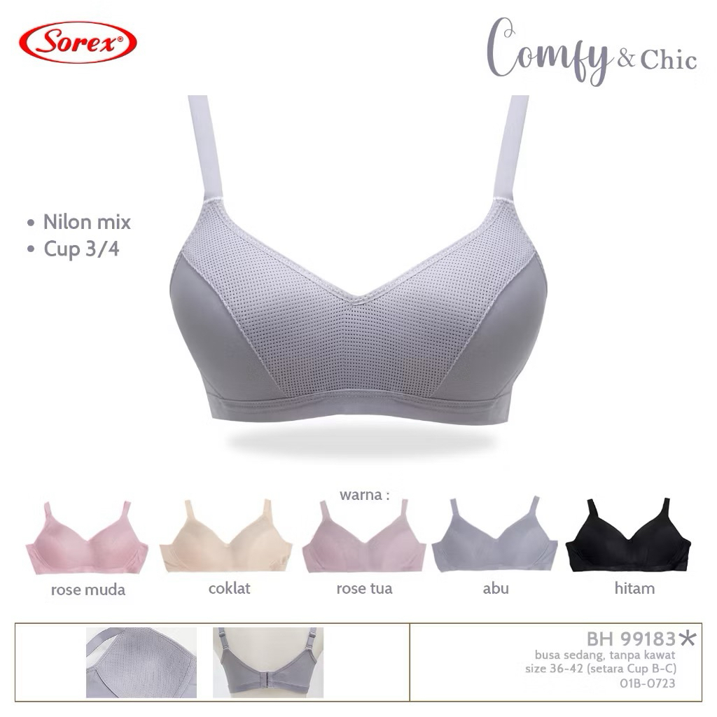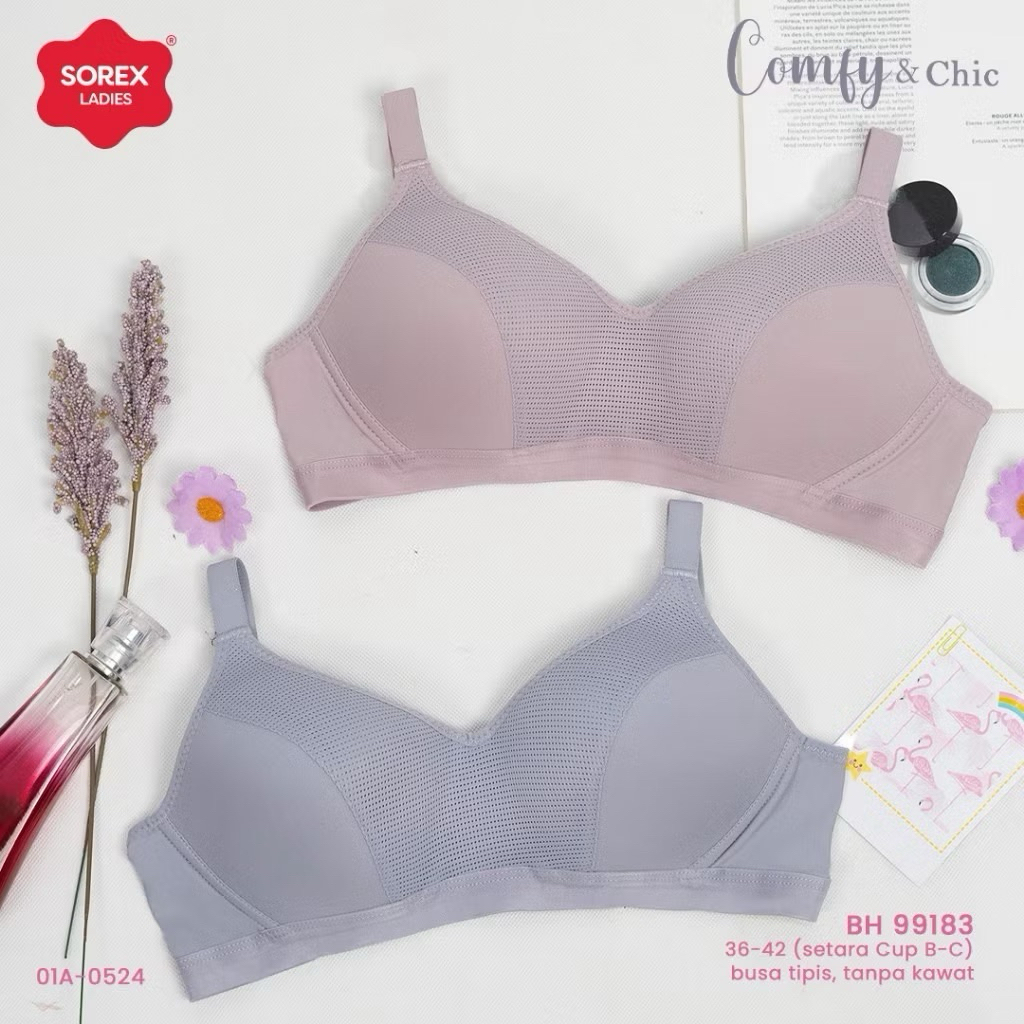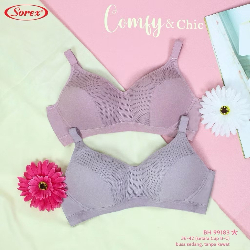 1,2,3Pcs- Promo BH Bra Wanita Sorex 99183 Kait 3 Lembut Tanpa Kawat Cup B-C Comfy Chic Bra