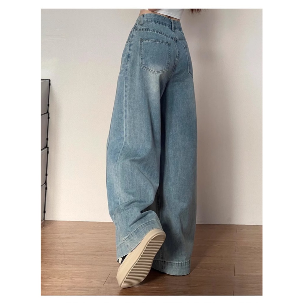 Yoyo- New Biru Kekinian Highwaist Kulot Loose Celana Wide Leg Jeans Wanita Korea Style