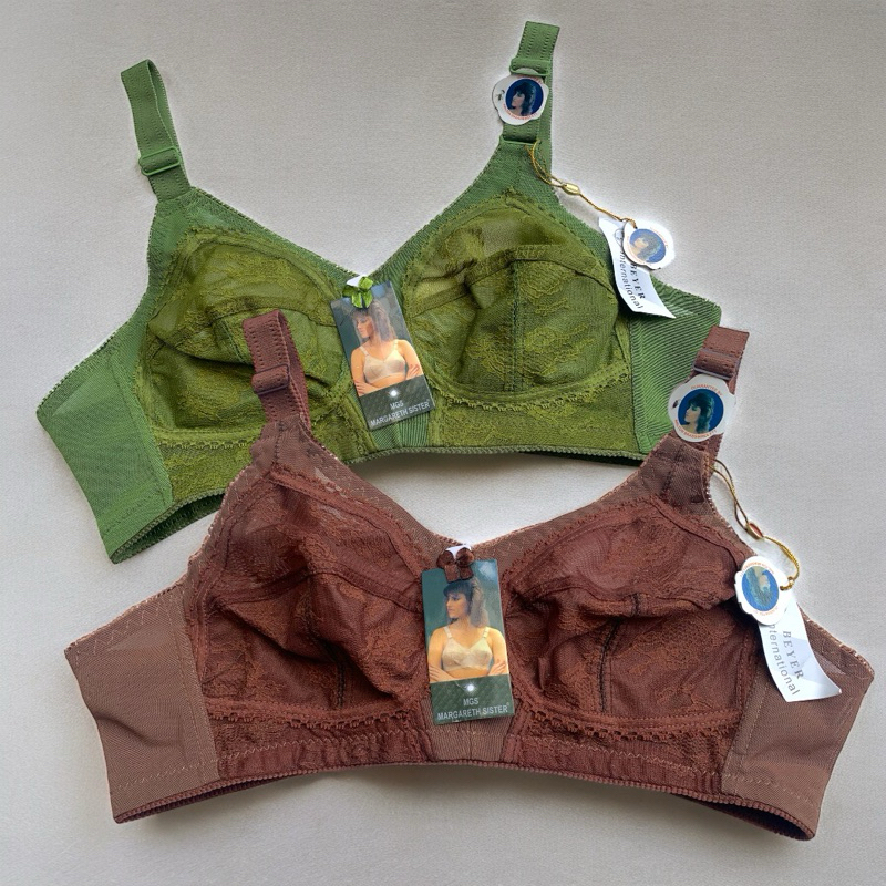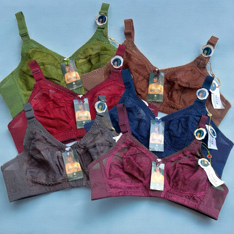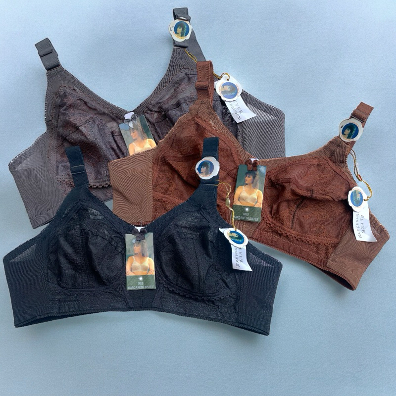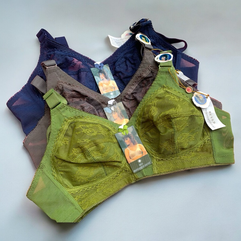 Bra Wanita Full Burkat Margareth Sister Tanpa Kawat Tanpa Busa Kaitan 3 Tali Lebar 3 PCS
