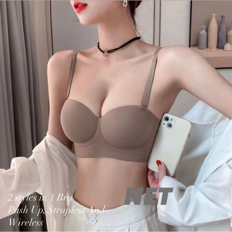 CLOVER BRA Premium 2in1 Strapless Bra Push Up Busa Tebal Tanpa Kawat