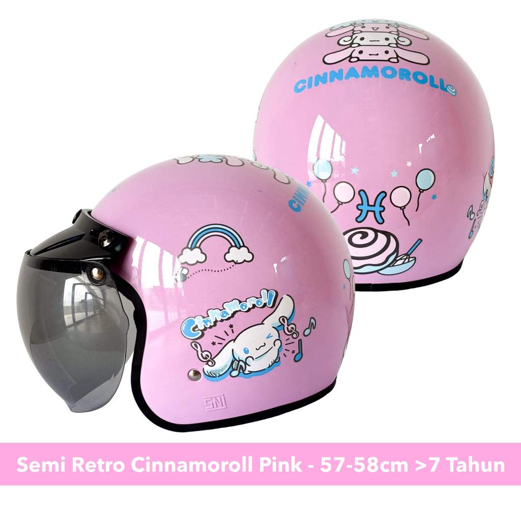 Helm Anak Lucu Motif Cinnamoroll untuk Usia 2 hingga Dewasa SNI Kaca Cembung
