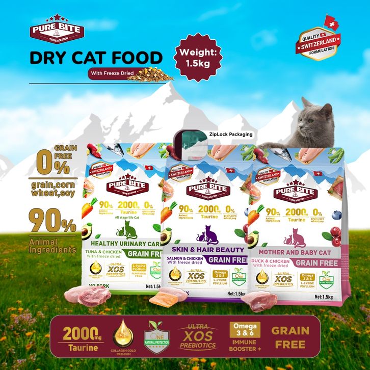 GRATIS ONGKIR✅ PUREBITE GRAIN FREE CAT FOOD 1.5KG – Makanan kering mix freeze dried untuk kucing