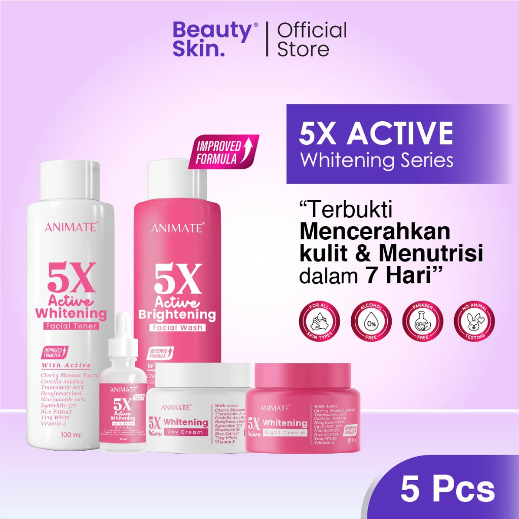 Animate 5X Active Whitening Series 5In1 / Cream Pemutih Wajah / Skincare Wajah